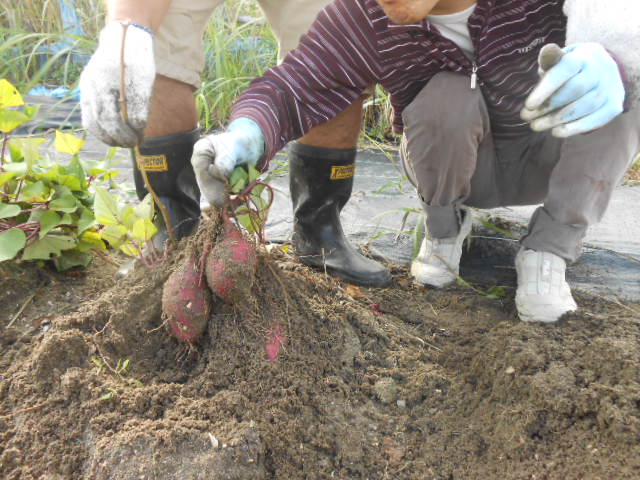 今年度は大きな芋がたくさん獲れ、利用者の方もスタッフも袋いっぱいに