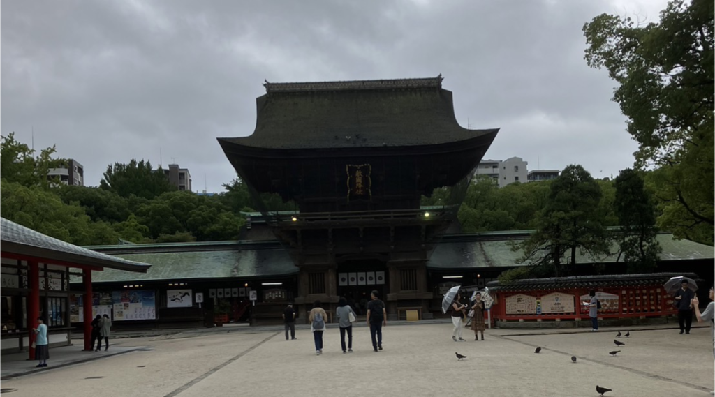 放生会に着いて、筥崎宮で参拝しました。色々なお店を見て回りました。