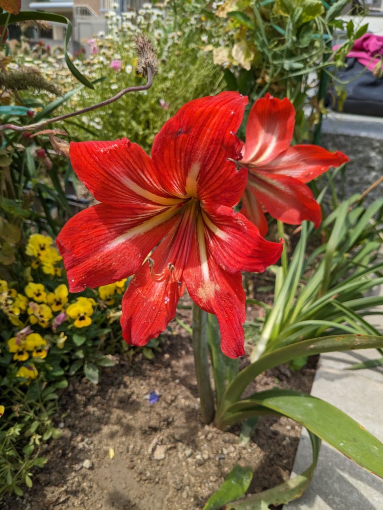 皆さんこんにちは。暑いけど、負けずに力を合わせて頑張っています。いろんな花の草取りや水遣り、花植えもしています。珍しいきれいな花も咲いていて、勇気が湧いて明るい気持ちになりそうです。いつまでも綺麗な花壇にしていきたいと思います。